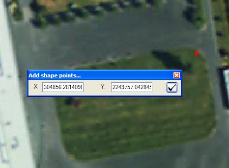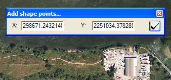 Cette icône permet de tracer de nouvelles entités, c'est-à-dire des points, des lignes ou des polygones suivant le type choisi auparavant. Les coordonnées géodésiques du pointeur sont affichées dans une fenêtre qui permet d'utiliser les valeurs relevées sur le terrain, par exemple avec un GPS.