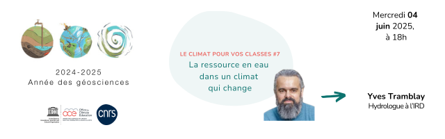 | | « Le climat pour vos classes » Dans le cadre de l’Année des géosciences, l’Office for Climate Education et le CNRS ont le plaisir de vous convier à leur série de webinaires interactifs « Le climat pour vos classes » tous les premiers mercredis du mois, d’octobre 2024 à juin 2025. « Le climat pour vos classes » , une série de webinaires interactifs pour les enseignants.