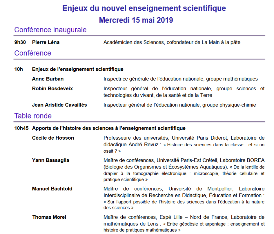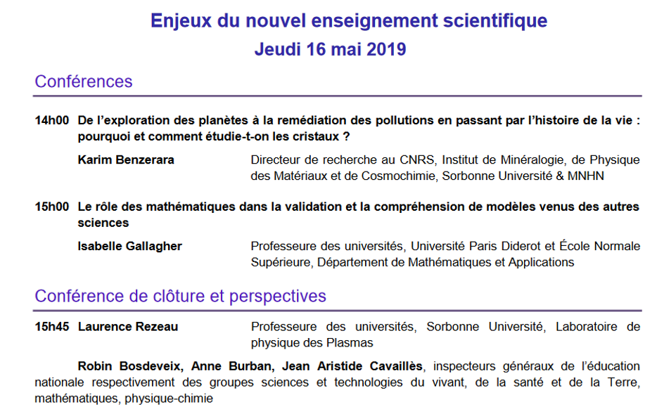 Conférences "Enjeux du nouvel enseignement scientifique - 15 & 16 mai 2019"