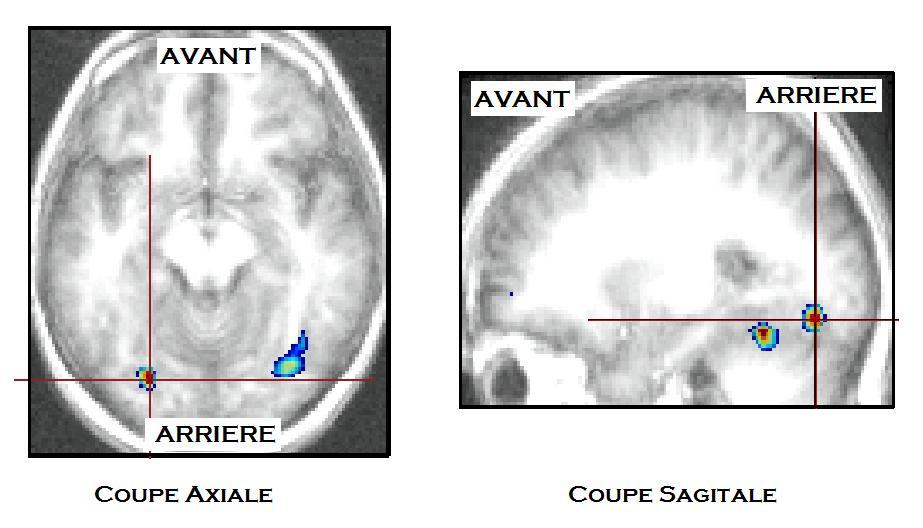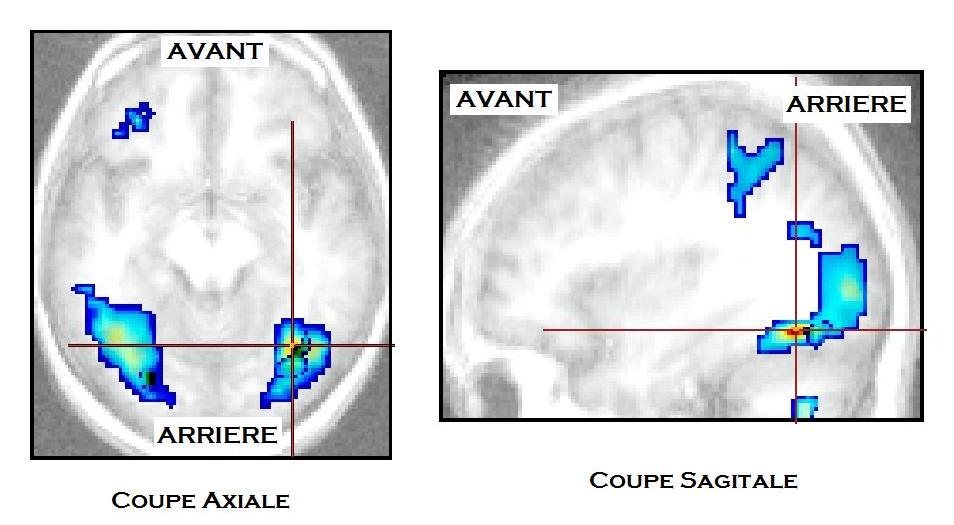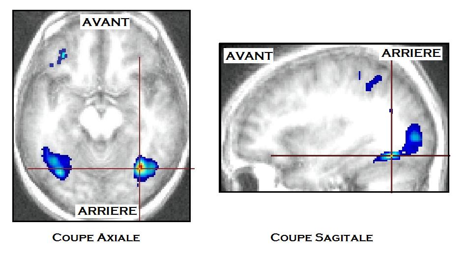 "Démontrez que le 3ème IRM pourrait correspondre à celui d'une personne synesthète lisant un texte noir sur fond blanc."