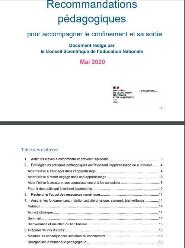 le Conseil Scientifique de l’Education Nationale propose quelques suggestions pour outiller les enseignants dans leur enseignement à distance, accompagner la rentrée progressive, et tirer les leçons pour l’avenir.