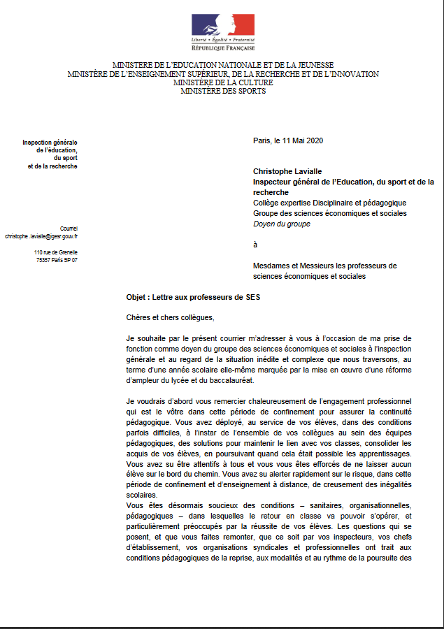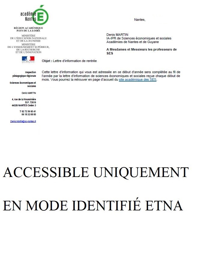 Lettre d'informations de rentrée de Mr MARTIN, IA-IPR de SES