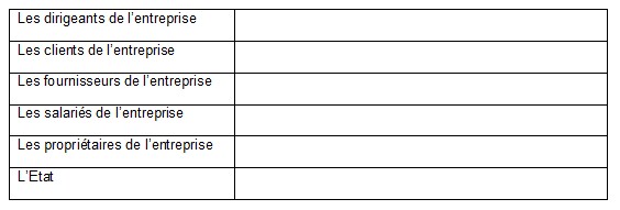 Montrez quel intérêt ont les agents suivants à ce que l'entreprise soit performante.