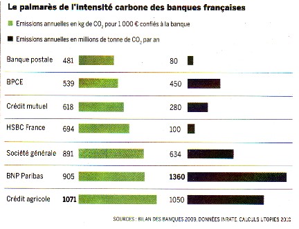 Note : pour mesurer l'intensité carbone d'une banque, on a additionné les émissions de carbone générées par l'activité économique des agents (entreprises, ménages...) qui a été financée par cette banque.