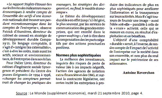Source : Le Monde (supplément économie), mardi 21 septembre 2010, page 4.