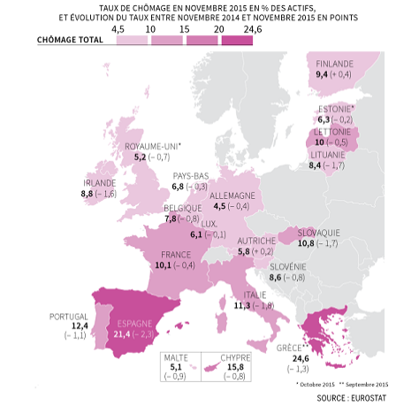 Document n ° 7 : Niveau du SMIC et taux de chômage en Union Européenne