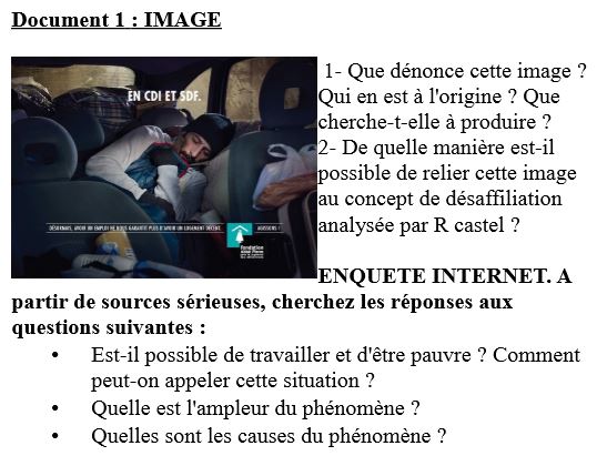 - En amont : Sensibilisation et cours en autonomie à l’aide d’un extrait de JT et de deux entretiens avec R Castel.