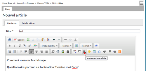 Il est possible aussi d'insérer le formulaire dans un message dans l'ENT ou dans le cahier de textes.