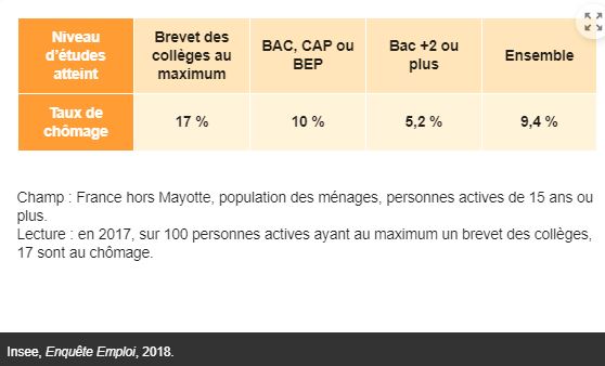 3- Que lien peut-on établir entre le niveau des diplômes et le taux de chômage ? Justifier en choisissant deux données.