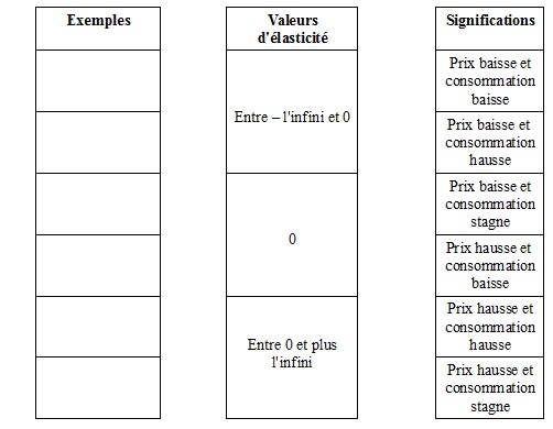3/ Synthèse sur les différentes valeurs de l'élasticité-prix