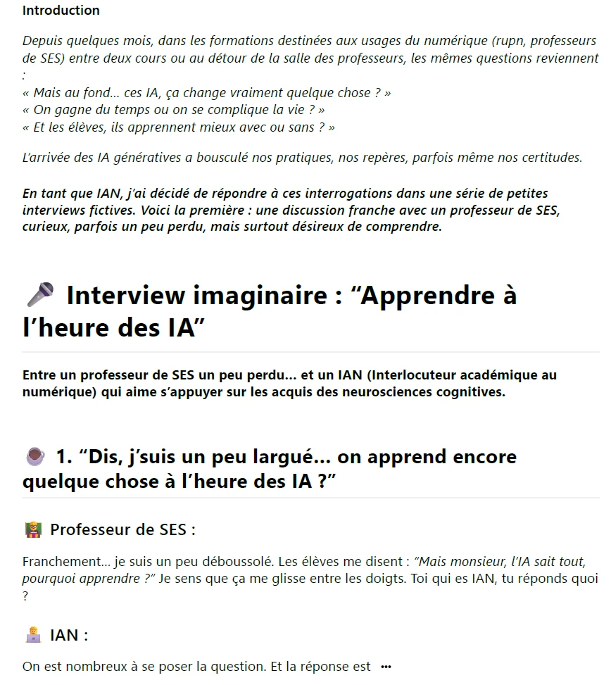 Frédéric Graveleau, interlocuteur académique pour le numérique (IAN) de Sciences économiques et sociales vous propose de répondre à vos interrogations concernant les IA au travers de petites interviews imaginaires entre collègues. Voici la première : une discussion franche avec un professeur de SES, curieux, parfois un peu perdu, mais surtout désireux de comprendre.