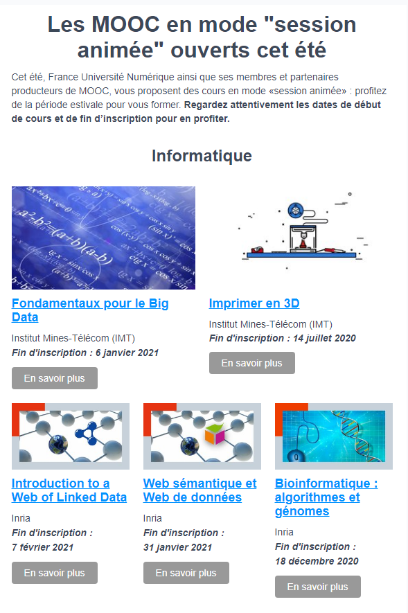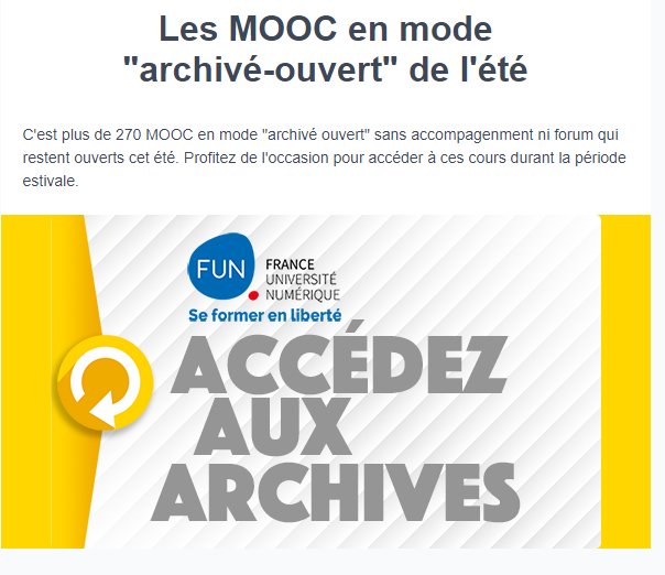 Publié le 3 juillet 2020 - Mis à jour le 9 juillet 2020 Partenariat fun mooc : été 2020 Le 3 juillet 2020 Les mooc proposés par FUN cet été