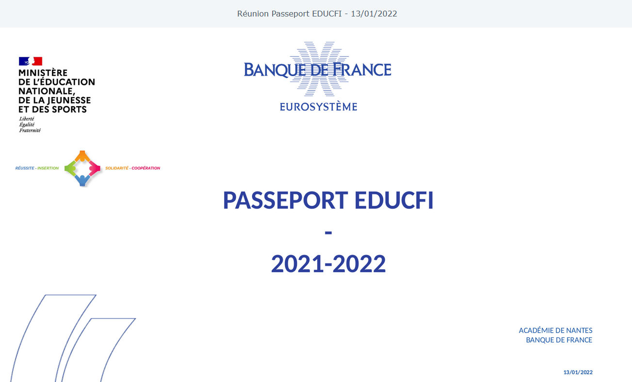Publié le 17 janvier 2022 - Mis à jour le 18 janvier 2022 Partenariat passeport EDUCFI pour l'académie de Nantes Le 18 janvier 2022 Webinaire et diaporama de présentation des enjeux et des modalités académiques du Passeport EDUCFI Pour accéder à l'enregistrement du webinaire du 13 janvier cliquez sur l'image ci-dessous : Télécharger le diaporama qui présente les enjeux et les modalités académiques du Passeport EDUCFI Accéder à l'enregistrement du webinaire du 13 janvier