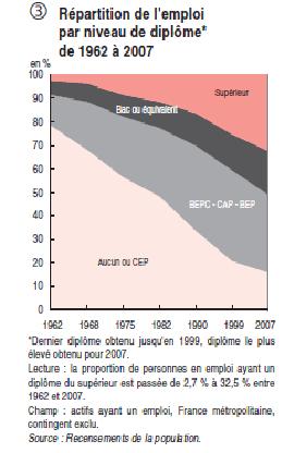 5. Montrez à partir de ce document que la qualification nécessaire demandée pour pouvoir obtenir un emploi a augmenté depuis le début des années 60 en France