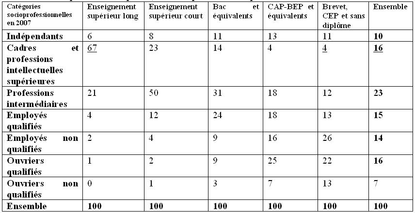 13. Montrer que l'accès des individus aux catégories socioprofessionnelles est lié à leur niveau de diplôme.