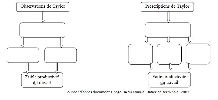 Source : F. W. Taylor, La Direction des ateliers, Dunod, 1919, in Manuel Bréal de terminale, 2003.