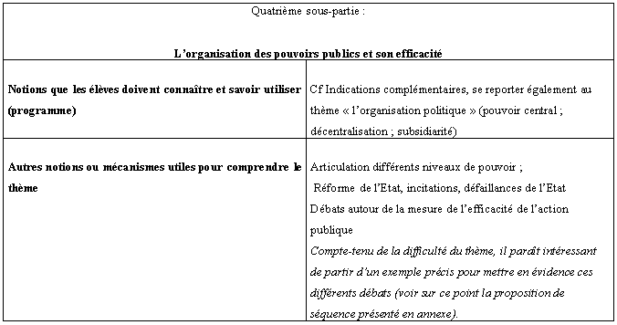 - d'élargir aux notions non exigibles, pouvant être abordées en cours de façon utile, sans pour autant faire l'objet d'une évaluation spécifique : jusqu'où peut-on aller dans la réflexion sur les pouvoirs publics en première ?