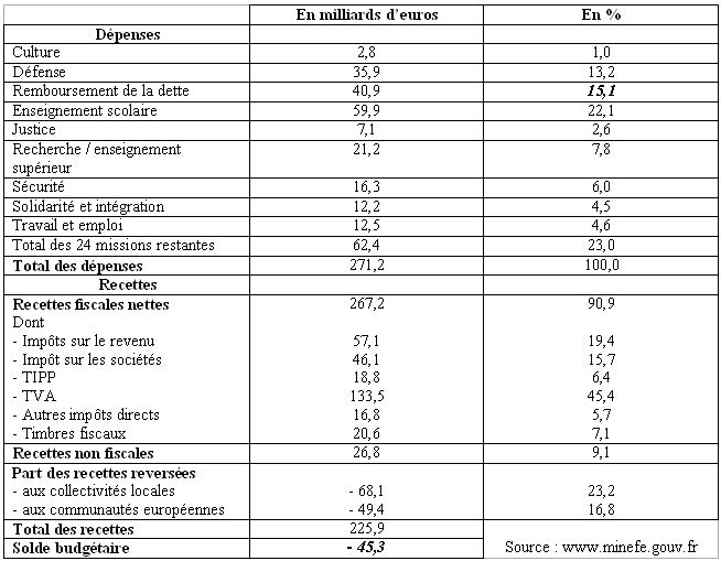 Questions- Lire et interpréter les chiffres en gras (solde budgétaire et service de la dette).