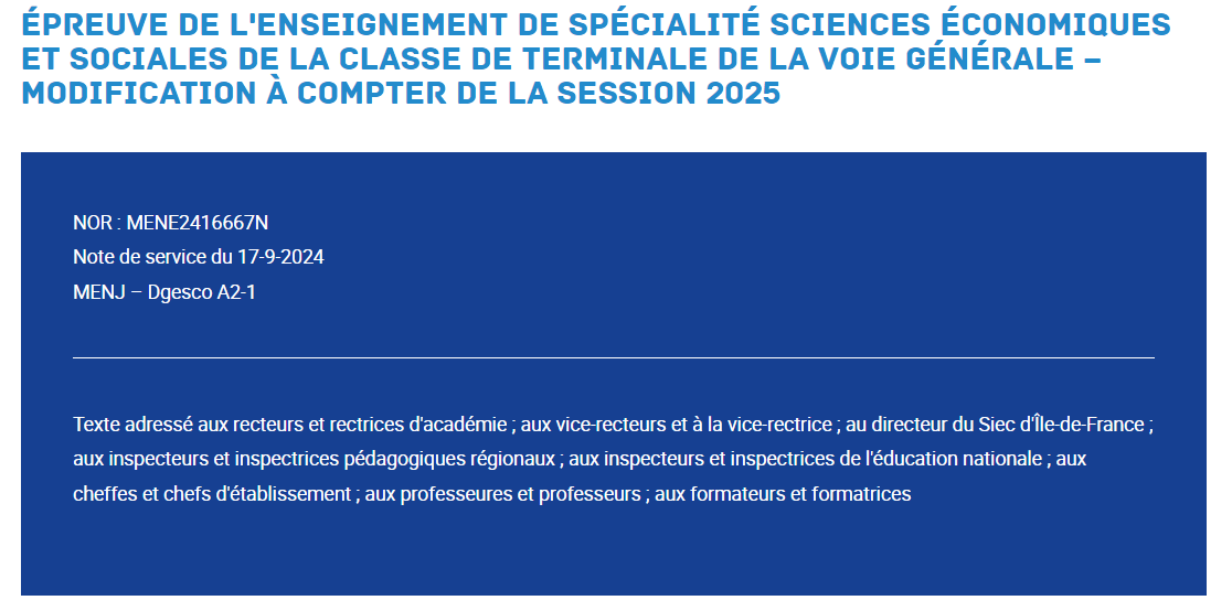 programme évaluable en sciences économiques et sociales – Modification à compter de la session 2025