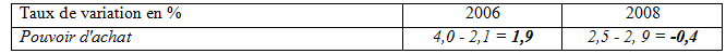 2) La hausse des prix en 2006 signifie-t-elle que le pouvoir d'achat a diminué ?