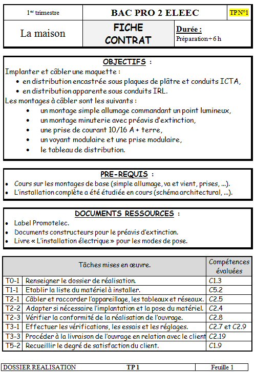 Première activité pratique de formation proposée au lycée professionnel Renaudeau, pour la classe de seconde baccalauréat professionnel électrotechnique énergie et équipements communicants