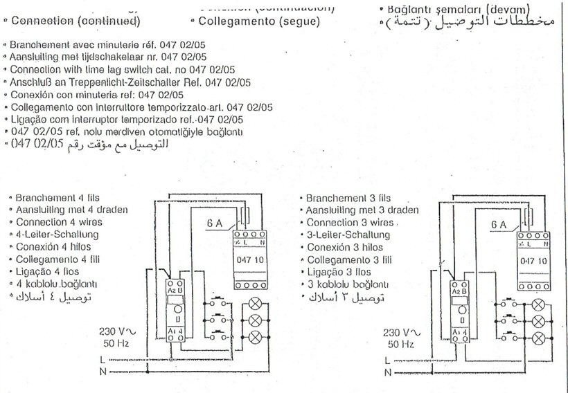 On vous demande un branchement de la minuterie et du préavis d'extinction en 4 fils. Autocorrection à la fin du document.