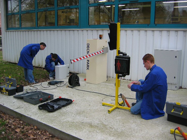 Ce document aborde en plus du scénario de formation, le travail mené avec des élèves de première année de bac pro afin d'installer et de raccorder une barrière de parking et des feux tricolores.