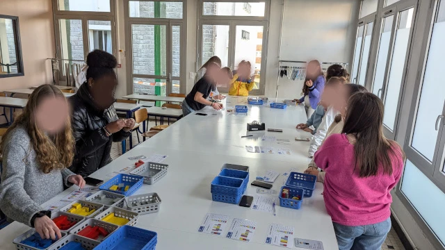 Le kit comprend les documents d’organisation, des paniers pour les transferts de commande et des briques de construction de 4 couleurs et 4 formes différentes. Il est simple à installer et s’adapte à la configuration de la salle.