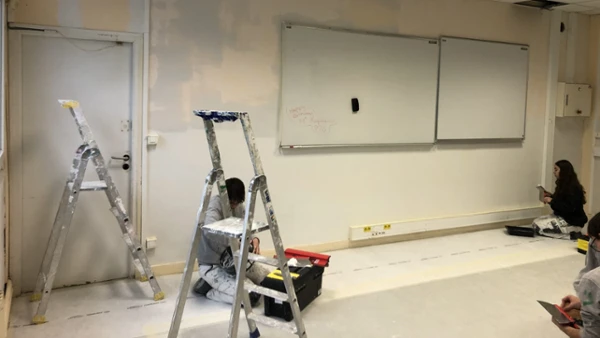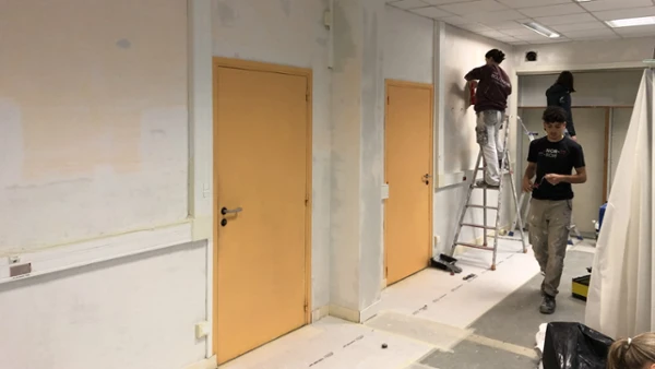 La classe de Première BAC PRO AFB a la charge de rénover une classe de PSE au sein du lycée.