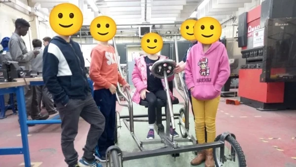 Un partenariat a été mis en place entre le lycée professionnel et l’institut médico éducatif de Montval sur Loir. Les élèves de l’IME souhaitaient acquérir une voiture à pédales inspirée de la Batmobile ; un appel à projet a donc été lancé par M. Gosnet auprès des enseignants du LP. La fabrication de cet ouvrage (dont le côté ludique a suscité la motivation des élèves) de taille conséquente et exigeant une certaine technicité correspondait parfaitement aux attentes du chef d’oeuvre. Cela a également contribué à renforcer le partenariat grâce aux visites des élèves de l’IME pour voir l’avancée des travaux, à la valorisation de nos élèves et a apporté une réponse à certains de leurs besoins :
