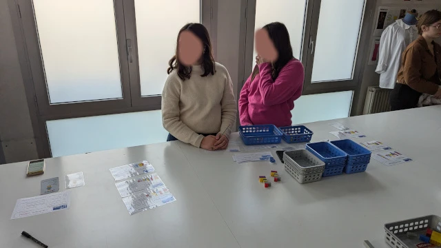 L’application numérique sur smartphone permet de faire l’acquisition des consignes, d’interagir avec les autres membres de l’équipe de production et de saisir des informations liées aux tâches à réaliser. La charte graphique de l’application participe à la contextualisation et l’immersion.Avertissement : l’application FabBrique est développée sur GLIDE une plateforme lowcode dont les conditions d’utilisation évoluent. La version actuelle n’est plus duplicable mais nous travaillons à la porter sur un autre support. La navigation est toujours possible et permet d’en comprendre les principes.