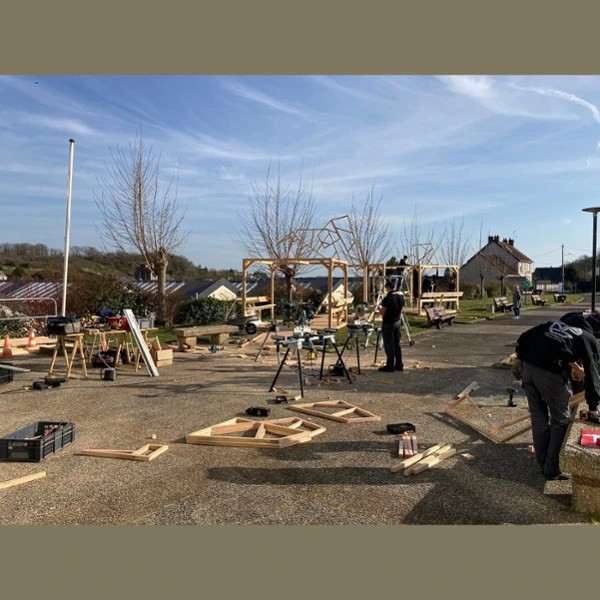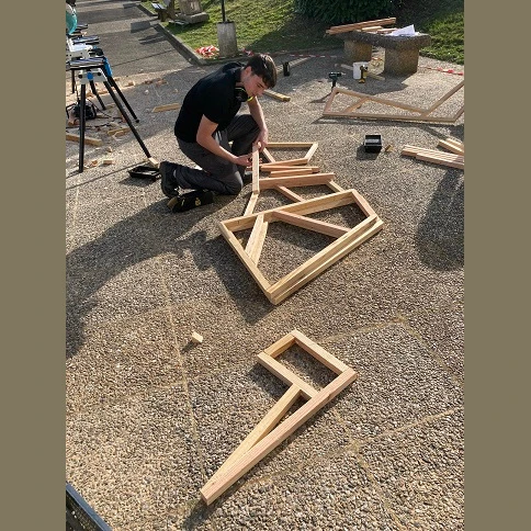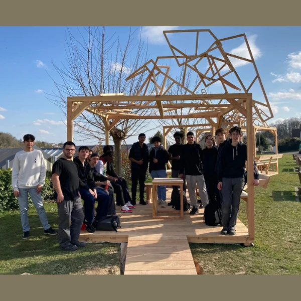 Pendant 4 jours, les élèves de seconde et terminales CAP Menuisier Fabricant et leurs enseignants ont travaillé avec Lucas Grandin, pour construire L’éléphérique.