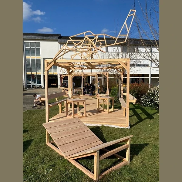 Lucas Grandin est un artiste qui travaille différents matériaux et particulièrement le bois. Depuis plusieurs années, il réalise des structures en bois avec des collégiens ou lycéens en France ou à l’étranger.
