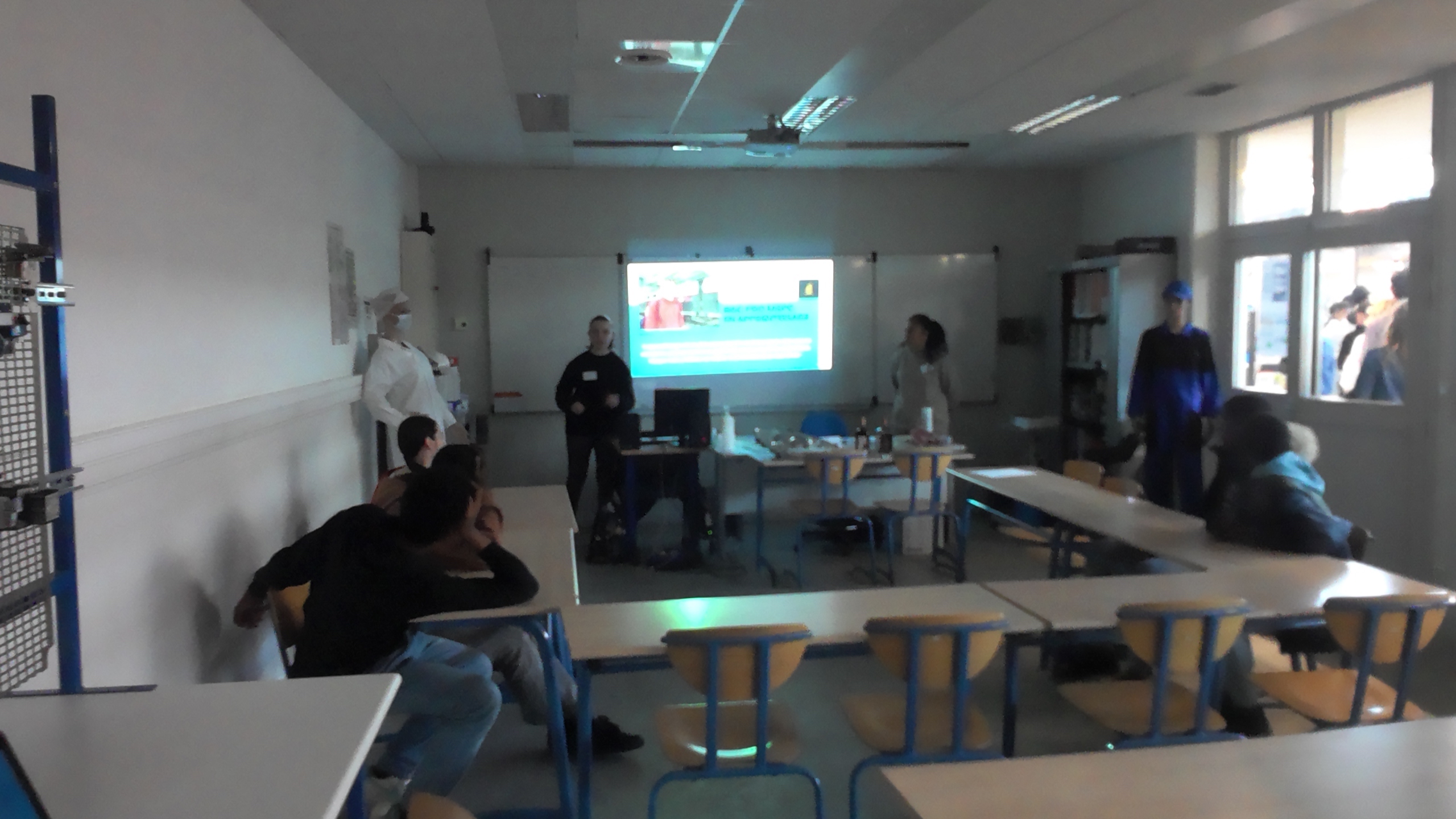 « L’industrie, c’est un secteur méconnu qui pourtant recrute » a répété Manon devant son assemblée. En charge de l’atelier « bac pro PMIA et après ? », cette élève de seconde a expliqué le contenu de sa formation et en a valorisé les débouchés en donnant à voir le portrait d’élèves qui ont intégré immédiatement la vie active ou bien qui ont poursuivi leurs études en apprentissage dès leur bac pro ou à l’entrée de leur BTS.