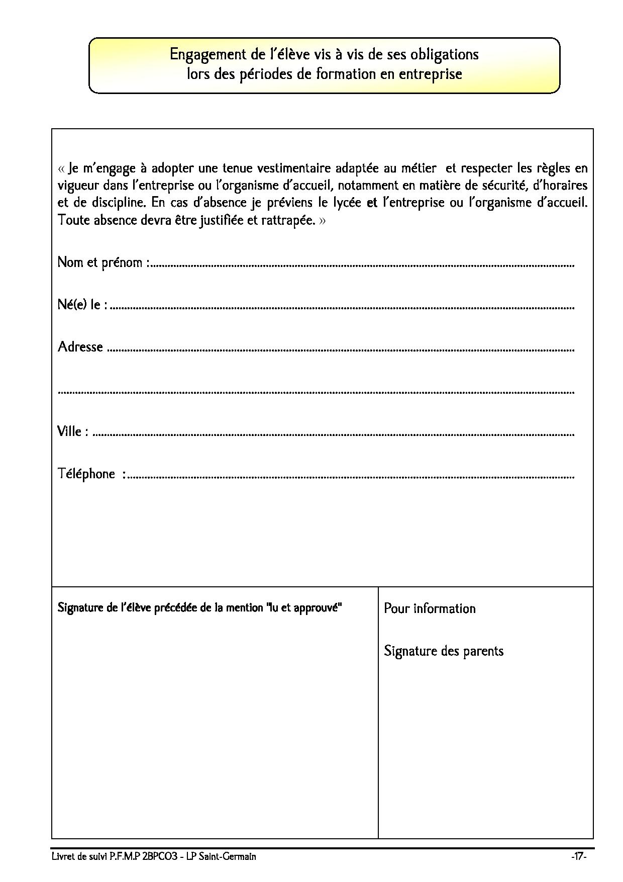 Nos élèves sont relativement souvent en période de formation en entreprise. Afin d'accompagner l'entreprise, et surtout l'élève, il est impératif que l'élève parte en entreprise avec un livret de suivi et surtout un carnet de bord qu'il sera amené à remplir régulièrement. Vous trouverez ci-dessous quelques exemples. Ce ne sont pas des modèles, mais simplement des exemples qui peuvent vous permettre de créer le vôtre, ou celui de la section énergétique ou bien celui de l'établissement.