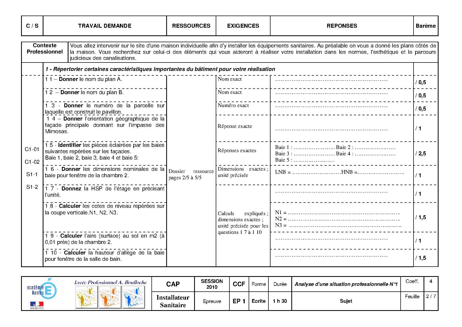 Exemple de présentation d'épreuves écrites pour les CAP, BEP et BAC PRO passés en CCF