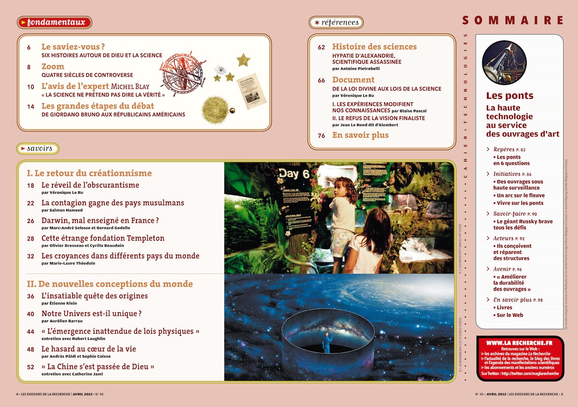 Dans le numéro d'avril de cette publication "La Recherche", vous trouverez un "Cahier technologies" avec un dossier sur les ouvrages d'art que sont les ponts.