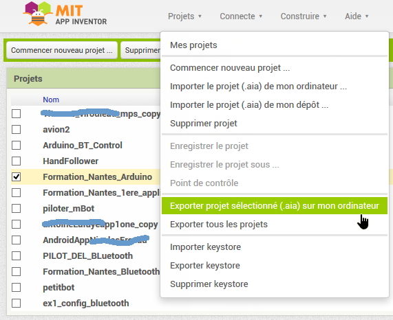 1. Exporter les projets des élèves