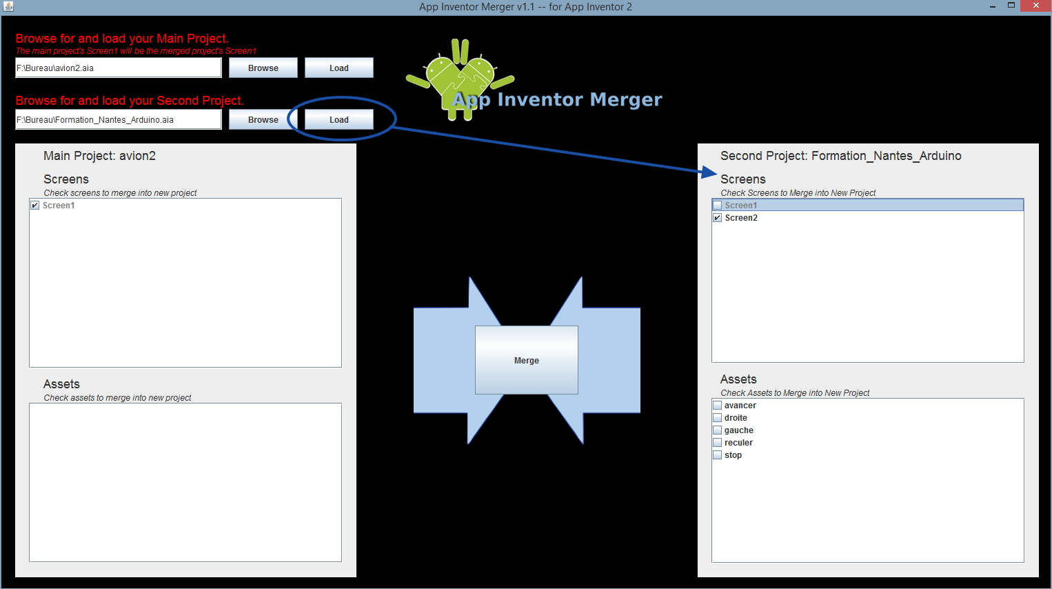 2. Ouvrir dans App Inventor Merger 1.1