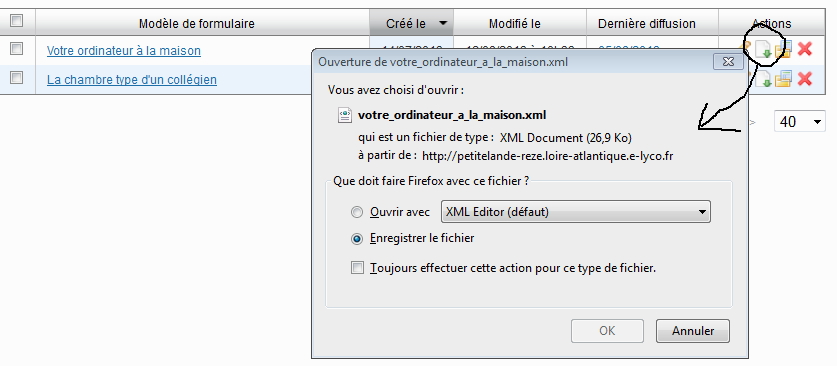 Vous allez donc bien sûr pouvoir aussi exporter vos formulaires pour les envoyer, échanger grâce à l'action "Télécharger sur le poste de travail" :