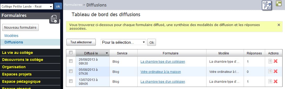 Ensuite vous allez pouvoir suivre la diffusion de vos formulaires :
