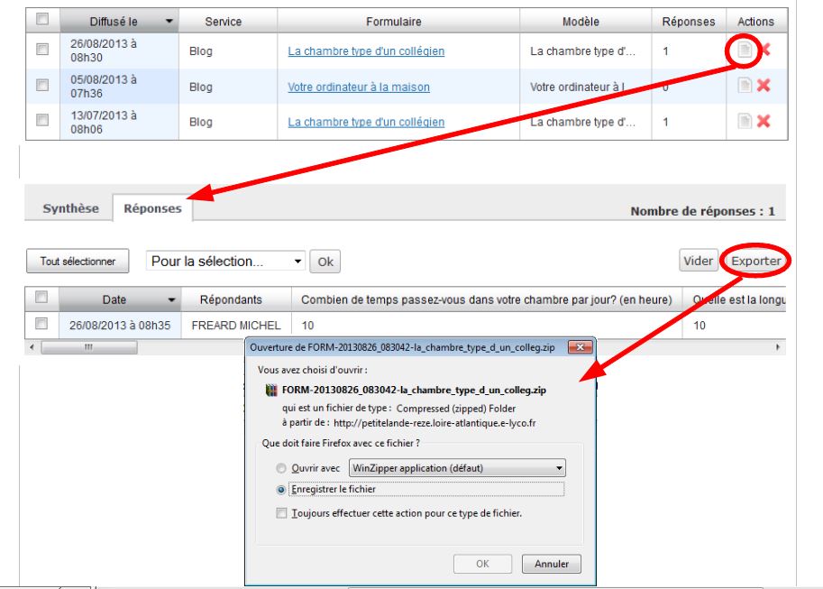 Ce fichier zippé pourra contenir aussi des fichiers joints par les répondants.
