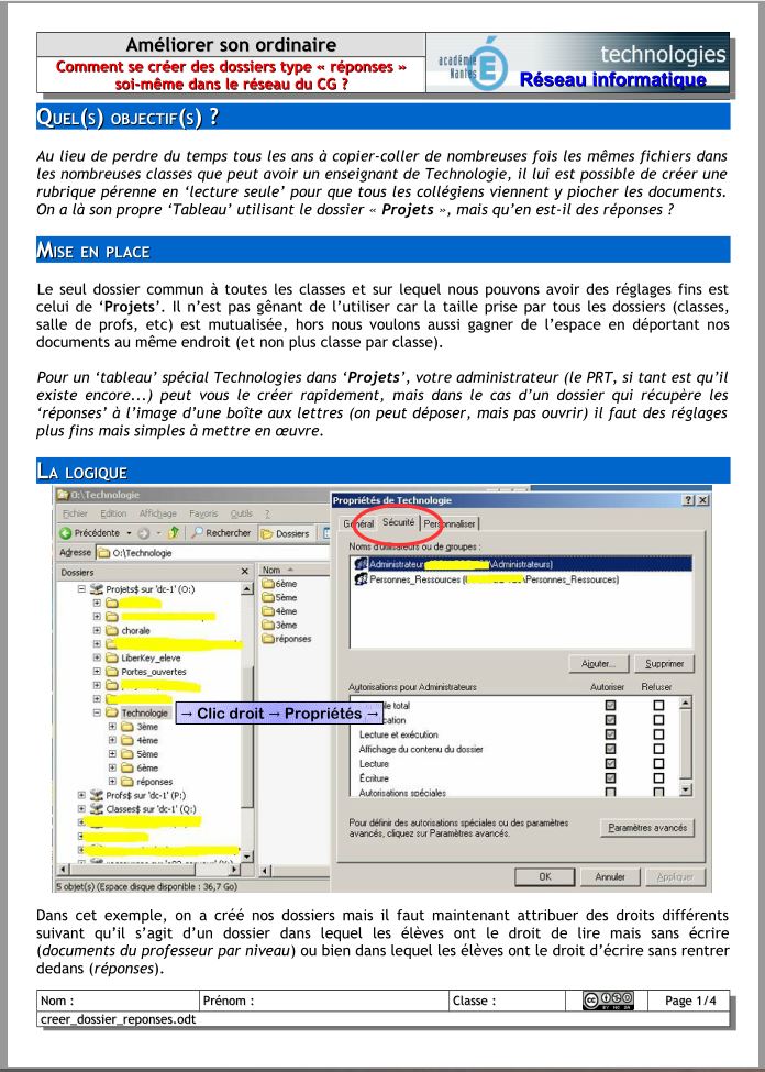 Au lieu de perdre du temps tous les ans à copier-coller de nombreuses fois les mêmes fichiers dans les nombreuses classes que peut avoir un enseignant de Technologie, il lui est possible de créer une rubrique pérenne en 'lecture seule' pour que tous les collégiens viennent y piocher les documents.