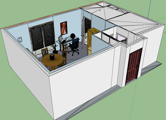 Le fichier importé sous Sketchup : (pensez à éclater le composant pour le nettoyer, notamment supprimer le toit...)