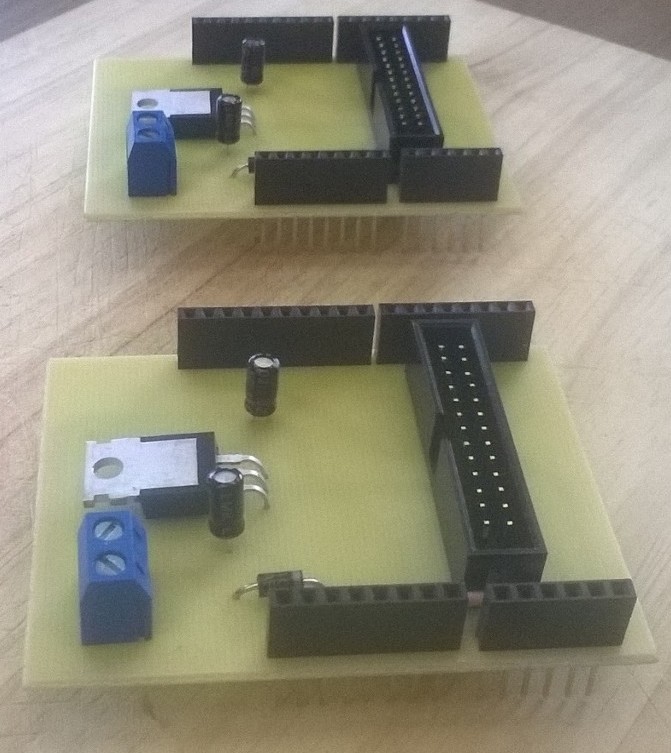 Afin de profiter des nouveautés technologiques offertes par les micro-contrôleurs, ainsi que des logicels de programmation graphique par blocs, ils ont donc créé un shield (carte d'extension) pour Arduino Uno :
