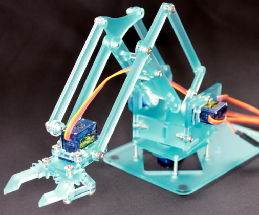 Voilà un projet simple mais de qualité proposant un bras manipulateur usinable avec fraiseuse ou bien une découpe laser, et un pilotage par 4 petits servomoteurs sur carte microcontrôleur. Cela peut donner lieu à des échanges avec un lycée ou un fablab.