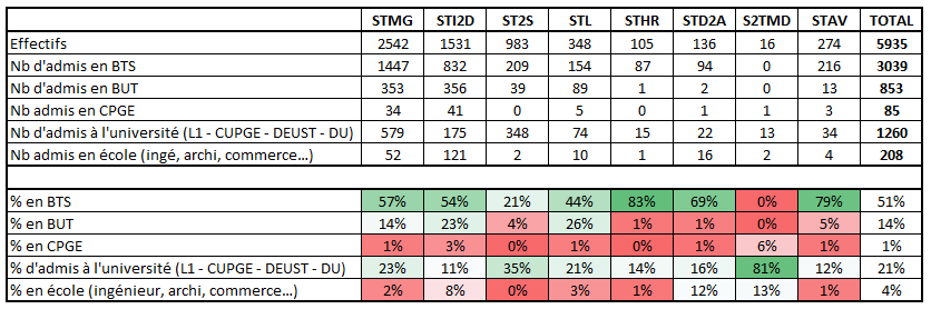 | Bac général | Bac professionnel | STI2D | STL | STMG | STHR | ST2S | S2TMD | |