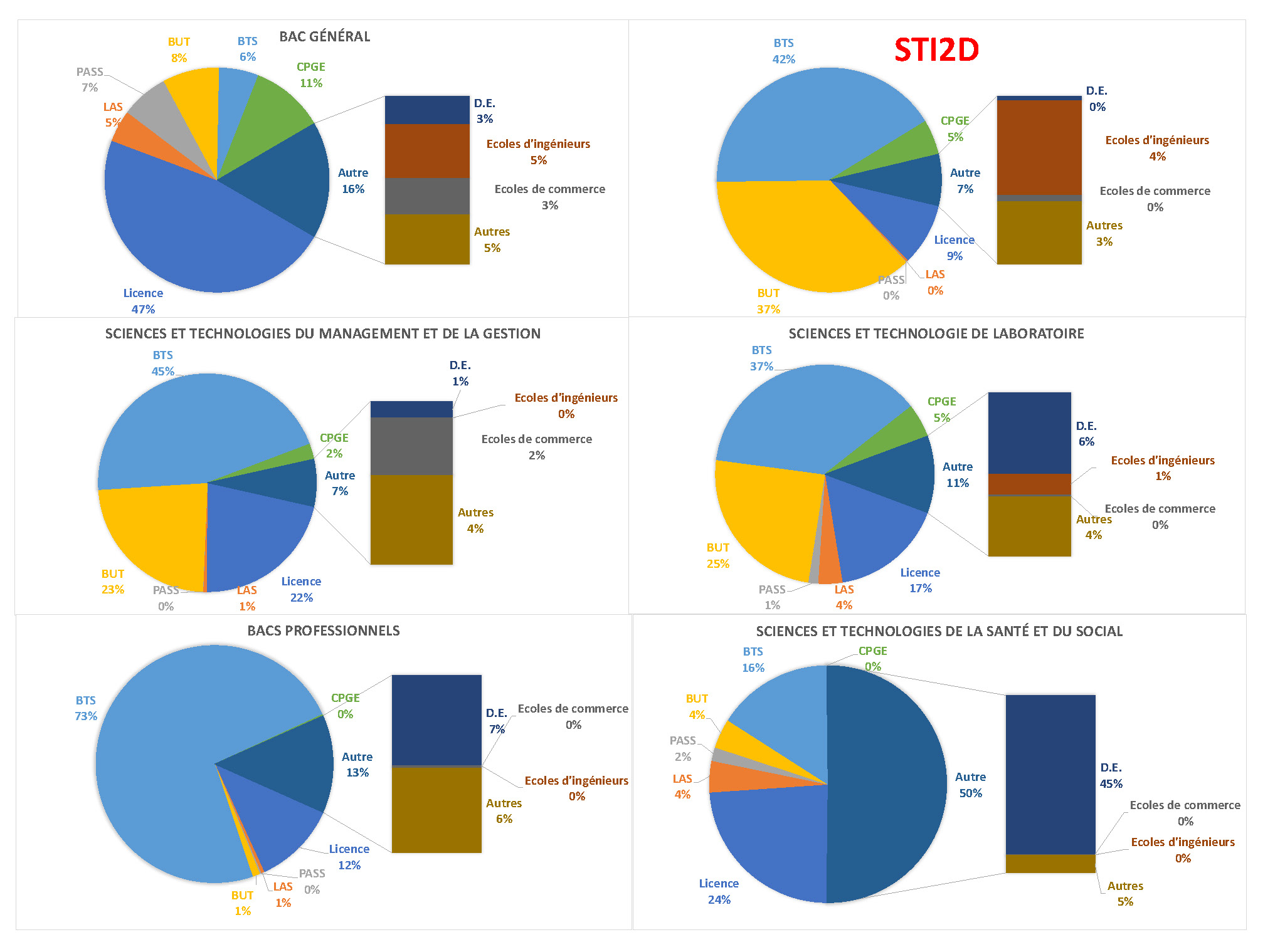 | % d'orientation en BTS (% ayant reçu une proposition) | 6 % | 73 % | 42 % (72 %) | 37 % | 45 % | 85 % | 6 % | 1 % |