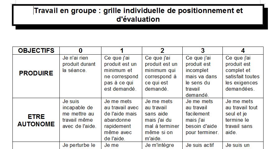 Les élèves disposent ainsi d'une grille de positionnement détaillée leur permettant de se les accaparer et de les utiliser pour leur auto-évaluation :