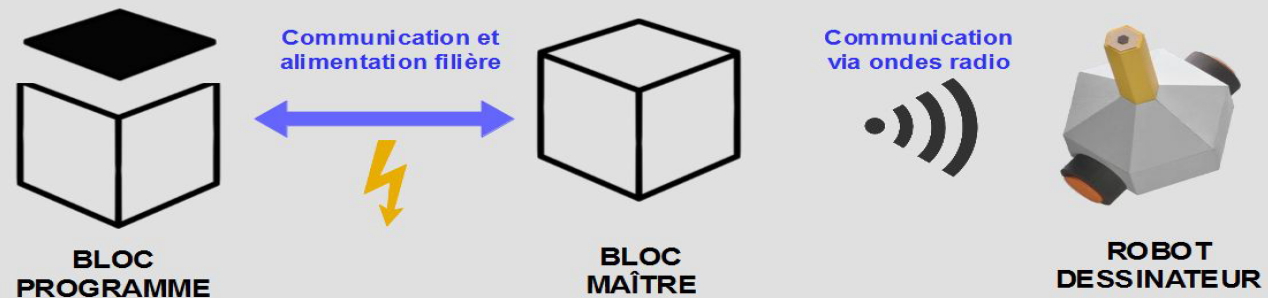 - un bloc maître qui transmet les informations des blocs programmes à un robot dessinateur.